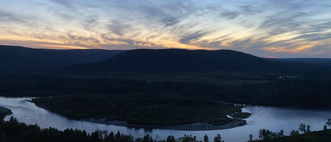 На вершине установлен крест в память о погибших в горячих точках. С площадки видно село Баушево и изгиб реки Иркут.